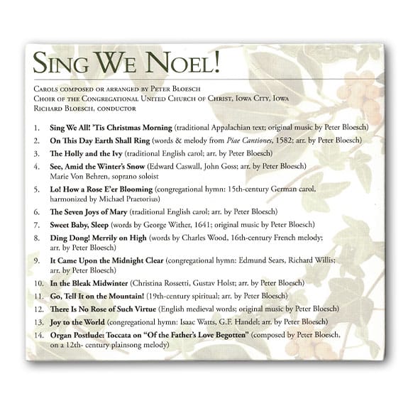 This CD is a collection of original and arranged carols scored for choir, chamber orchestra, and organ.